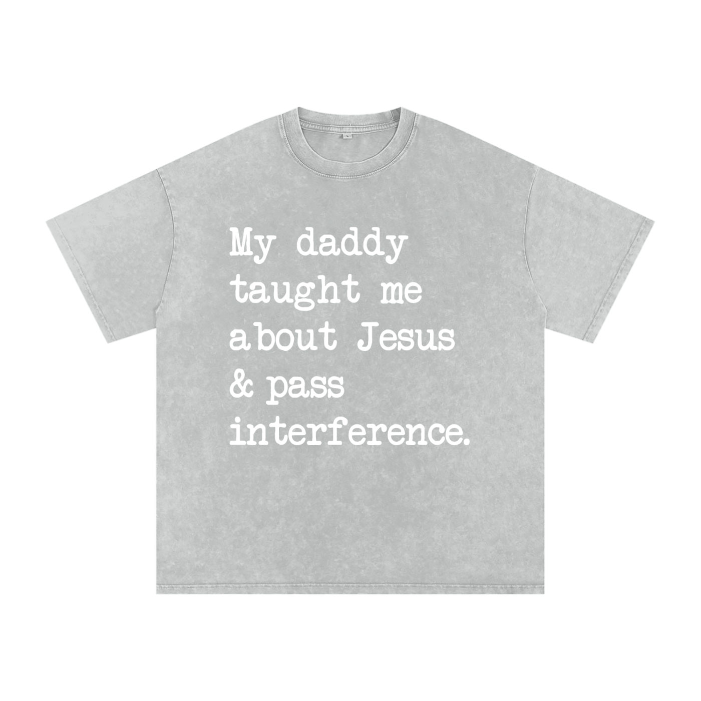 "Jesus & Pass Interference" Snow-Washed Oversized Cotton Tee